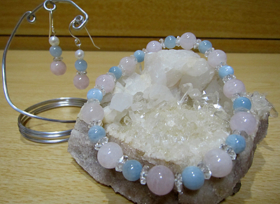 アクアマリンとモルガナイトのピアス&ブレスレット