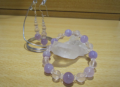 ラベンダーアメジストとローズクォーツのピアス&ブレスレット