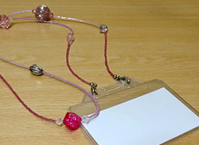 IDカードホルダーの試作版。イタリア産のビーズをアクセントにしてかなりかわいいイメージで作ってみました。 試作品なのでカードホルダーがちょっと安っぽいモノになっています。