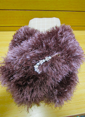 100円ショップの毛糸で、着け襟風のフェミニン系マフラーを編んでみました。 かわいく出来たけれどあまり暖かくないのが残念です。